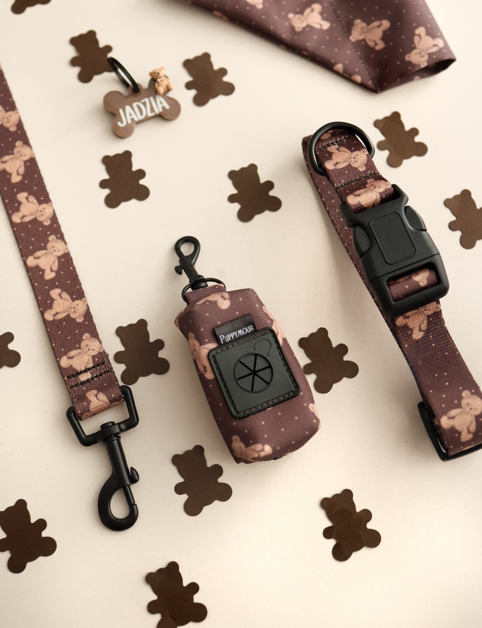 Autorski print Puppymour w ciepłych odcieniach brązu i motyw misiów 🧸 sprawia, że nawet najzwyklejszy spacer z pupilem zyskuje przytulny charakter.