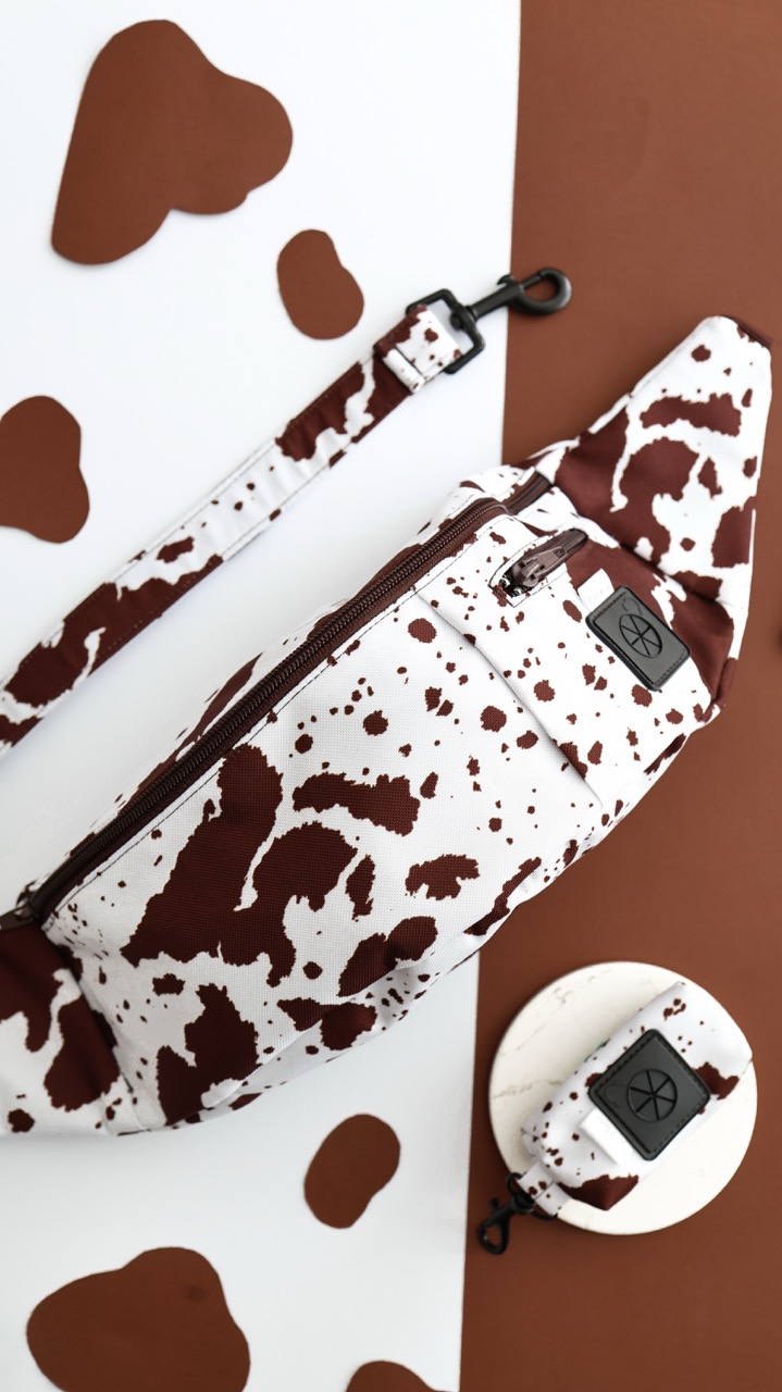 Brązowo-biały krowi print to niebanalny akcent, który idealnie wpisuje się w charakter kolekcji Puppy Cow. Nerka pasuje zarówno do codziennych spacerów, jak i wyjazdów czy imprez plenerowych.