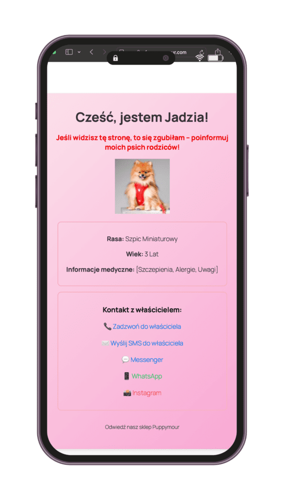 1️⃣ Zamawiasz TAG NFC Puppymour i podajesz dane swojego pupila.